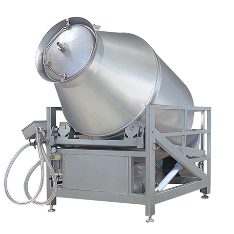 ● 完善的加料和卸料解決方案。擺動的滾揉桶支架,使桶前傾,可徹底卸料??梢愿鶕?jù)不同的產(chǎn)品特點選擇真空吸料或者一體化的上料機構(gòu)裝料。專門配置輔料真空吸管。